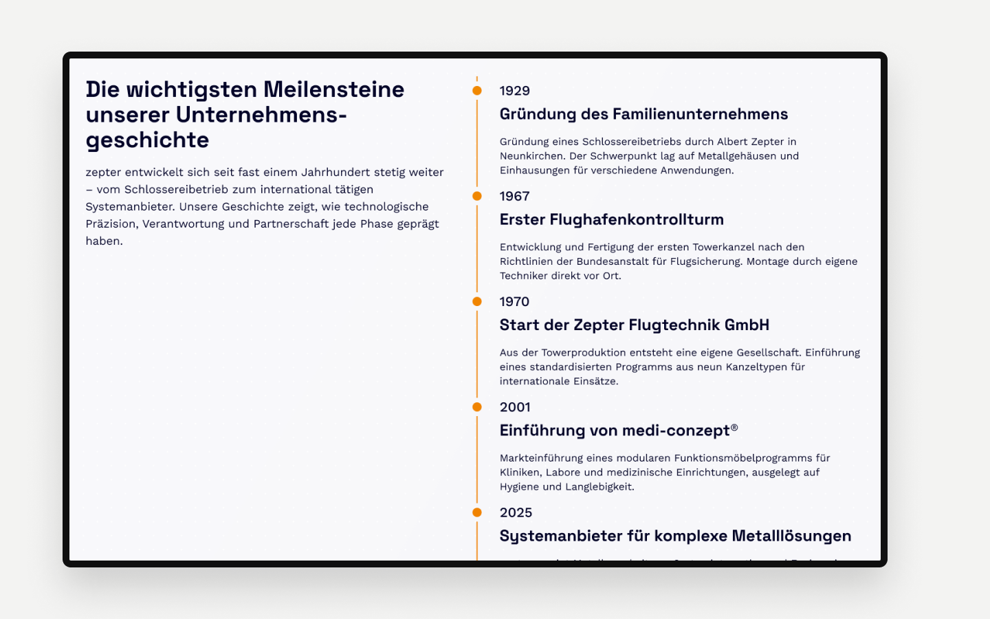 Zepter stand vor der Aufgabe, seine Website grundlegend neu zu denken: Weg von einer historisch gewachsenen, leistungsorientierten Darstellung – hin zu einer klaren, modernen Image-Website, die Kompetenz auf den ersten Blick vermittelt und unterschiedliche, hochspezialisierte Zielgruppen gezielt abholt.